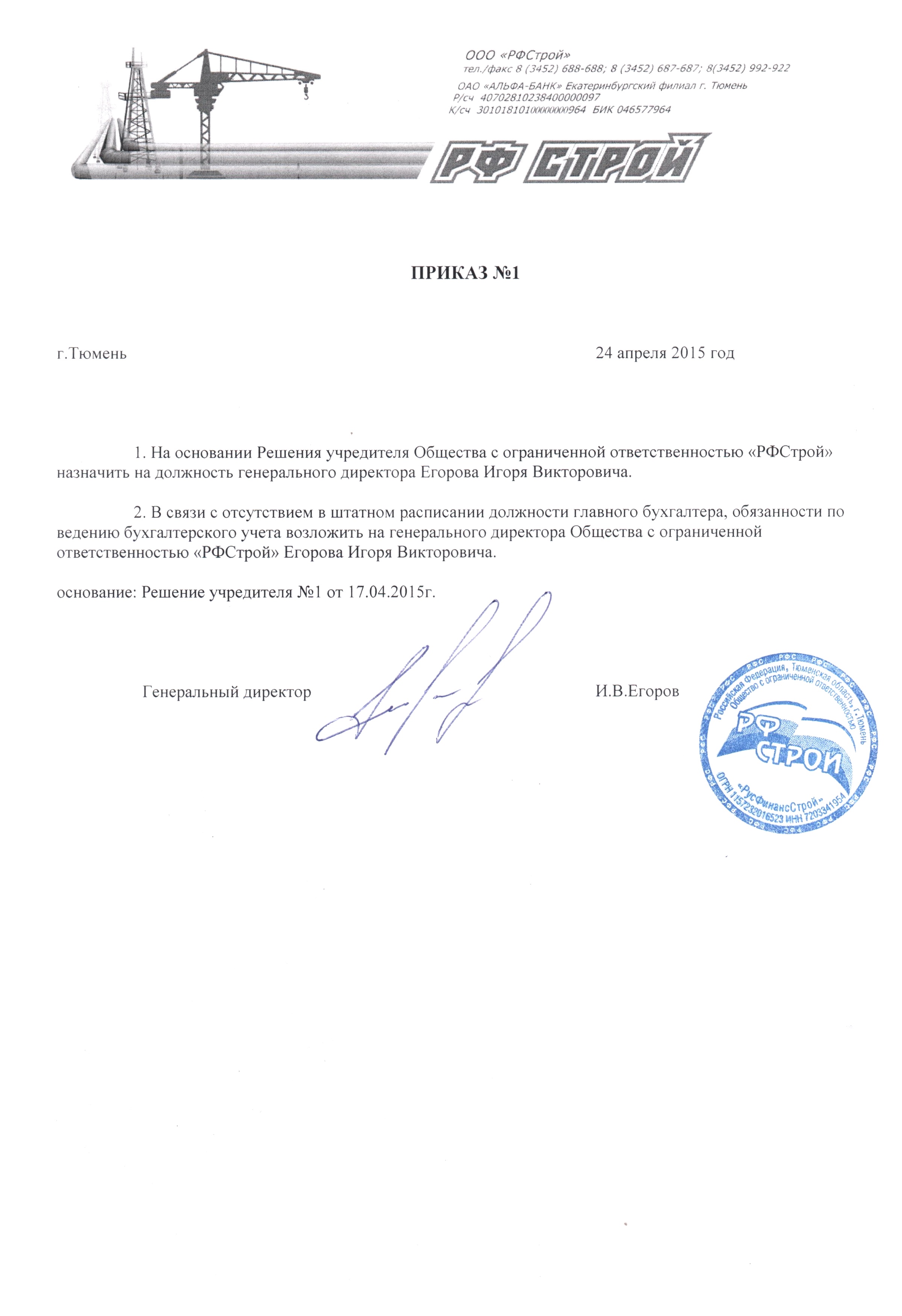 Приказ №1 от 24.04.2015