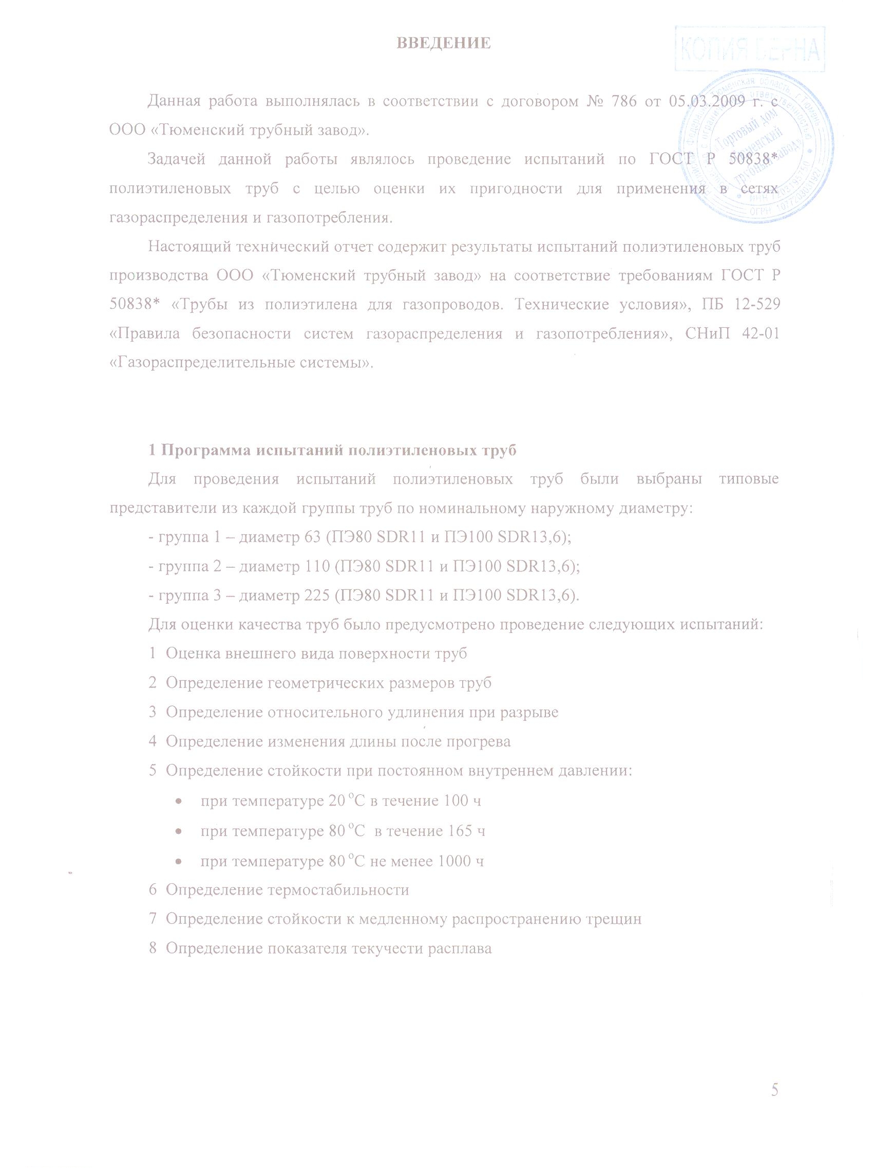 Испытания Полиэтиленовых труб производства "Тюменский Трубный Завод"