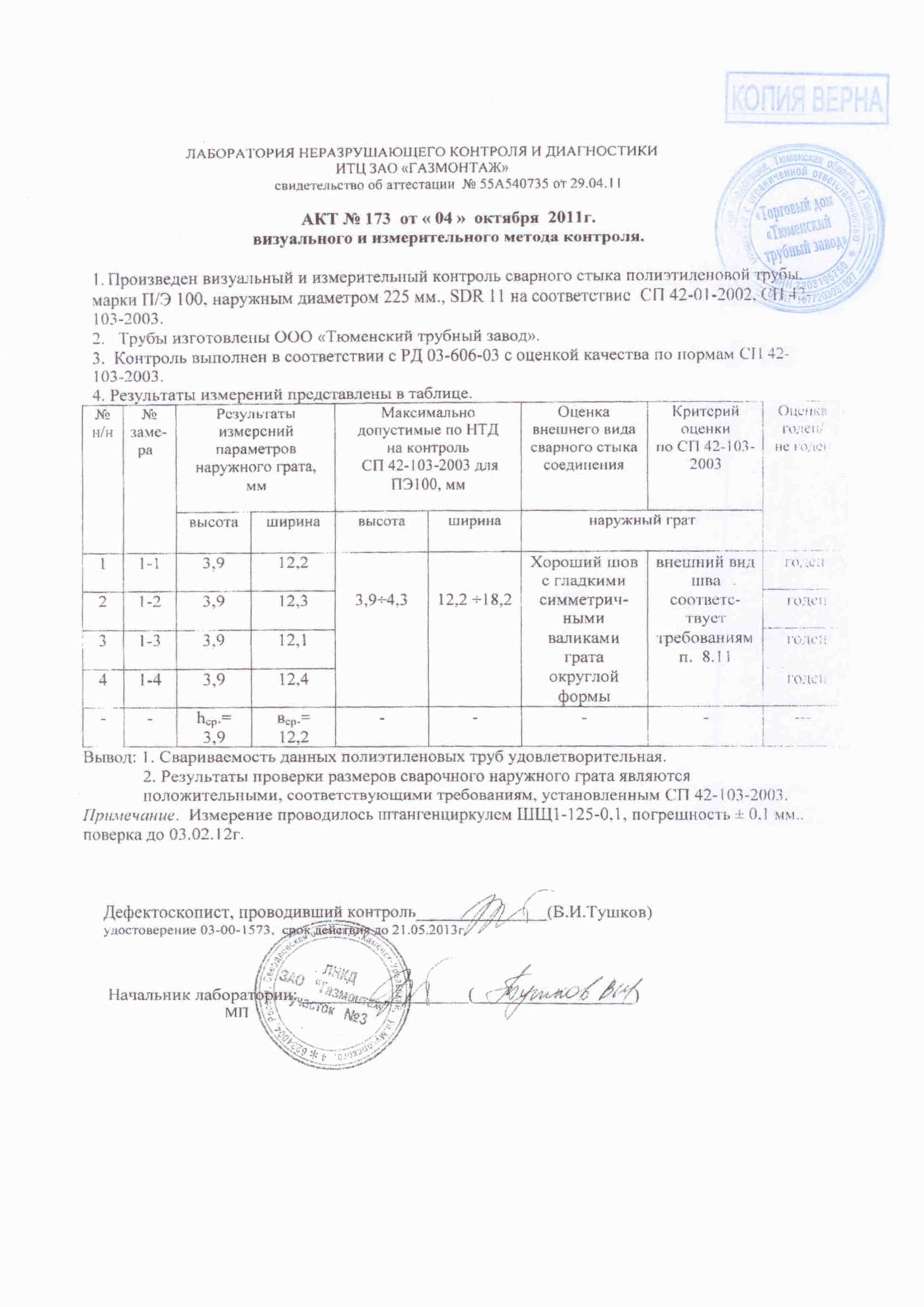 » Испытания Полиэтиленовых труб производства "Тюменский Трубный Завод"