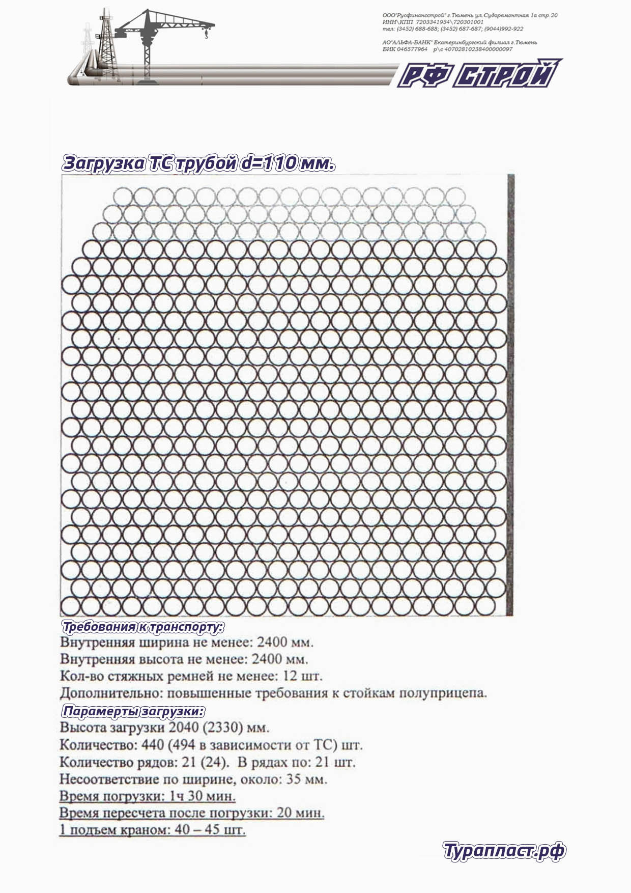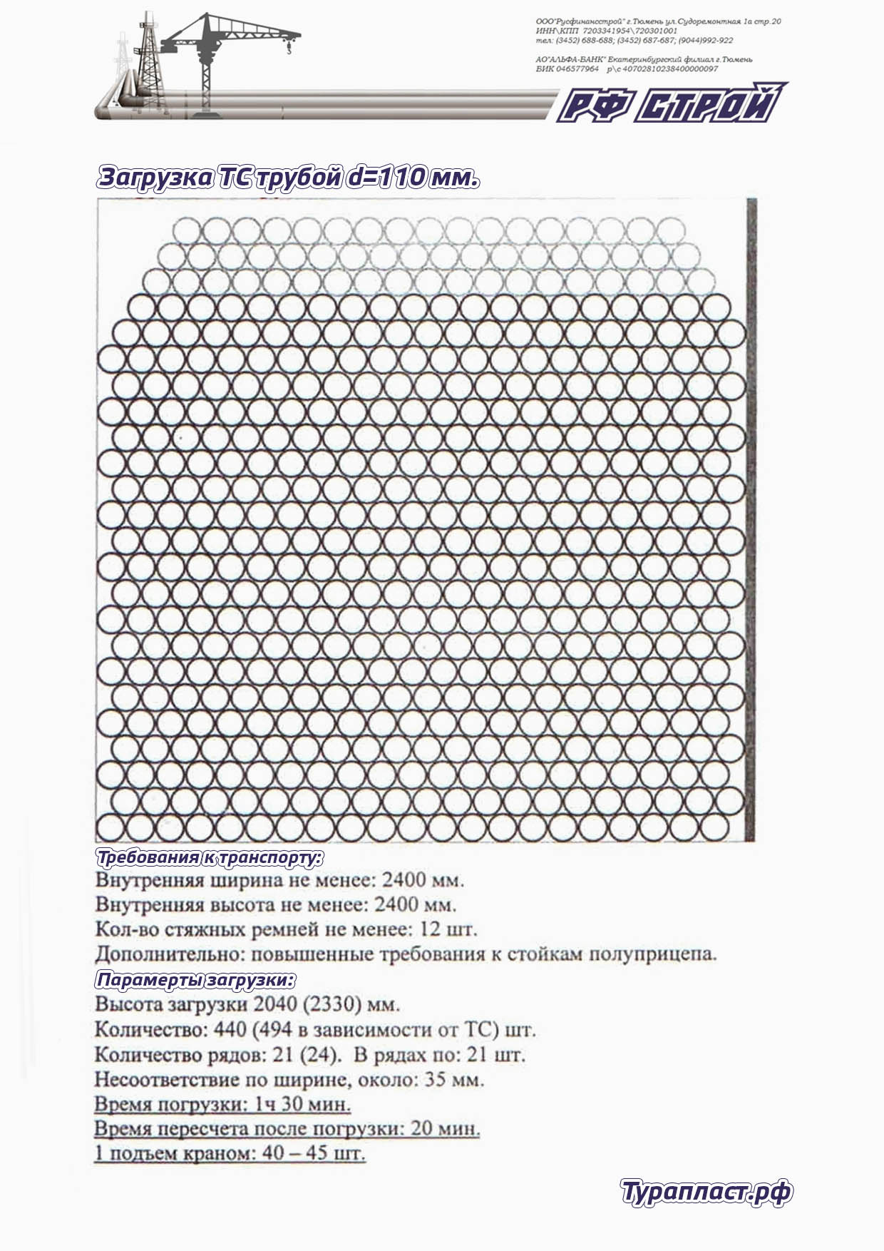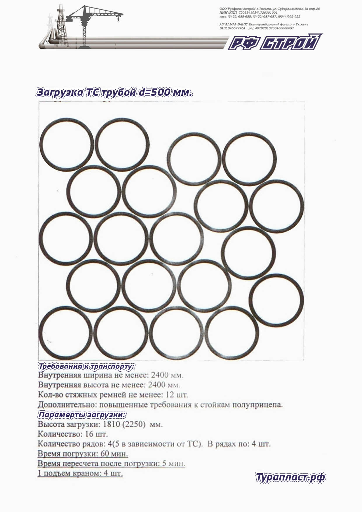 Загрузка ТС с кониками трубой d=800 мм., d=900 мм., d=1000/1200 мм. |